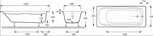 Чугунная ванна Jacob Delafon Diapason без ручек